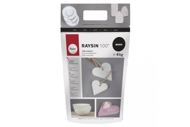 The casting powder "Raysin" is odourless and food-neutral, and it simply hardens in contact with air. It is white and sold in a bag of 4 kg.