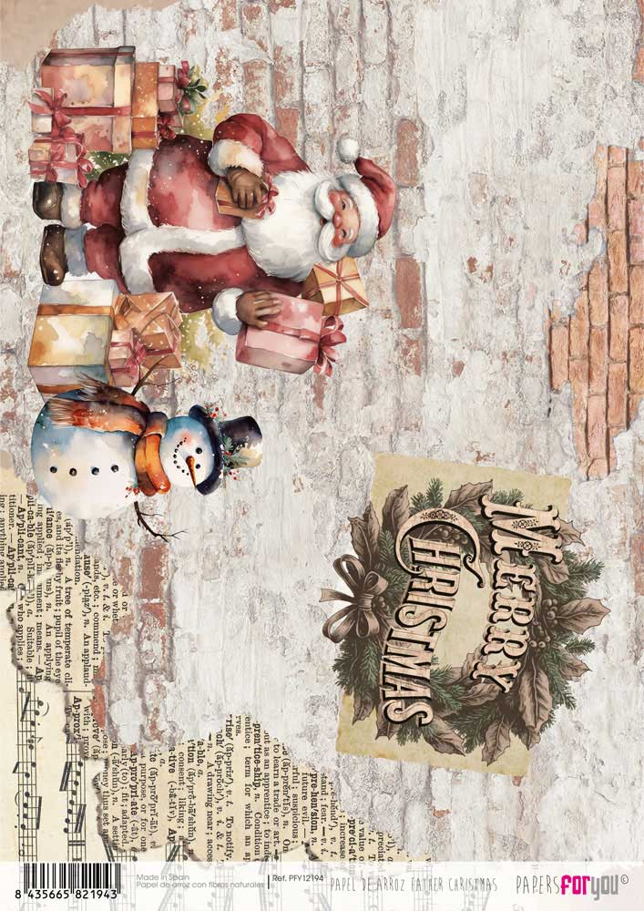 RICE PAPER 30X21CM FATHER CHRISTMAS PFY-12194