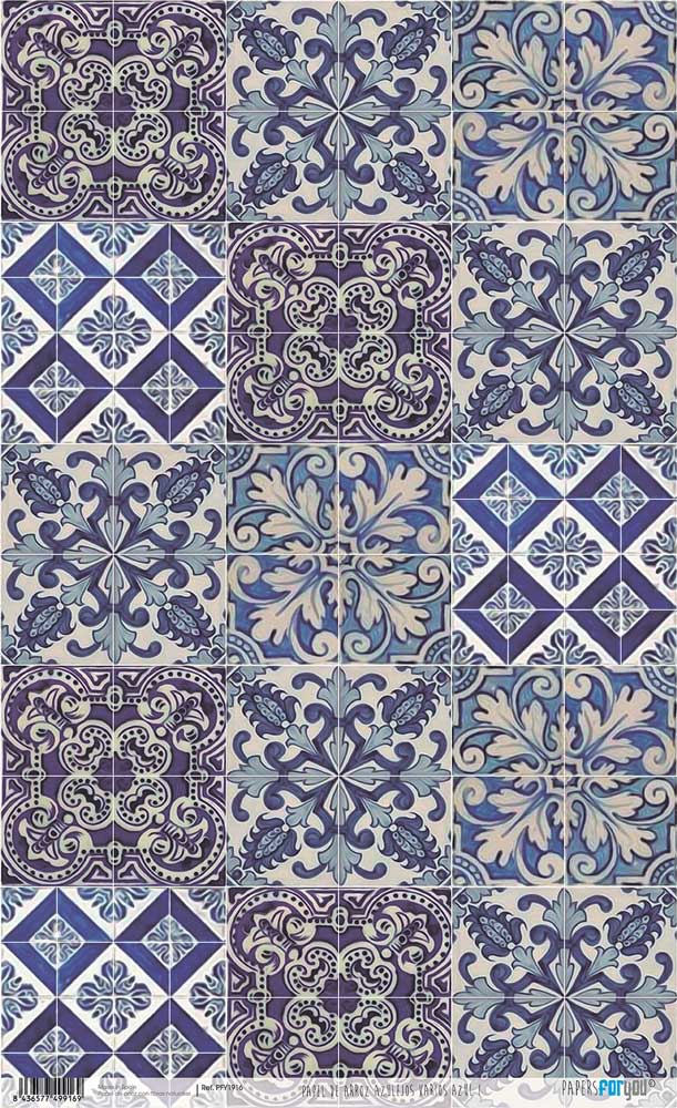 RICE PAPER 54X33CM AZULEJOS BLUE PFY-1916 PAPERS FOR YOU