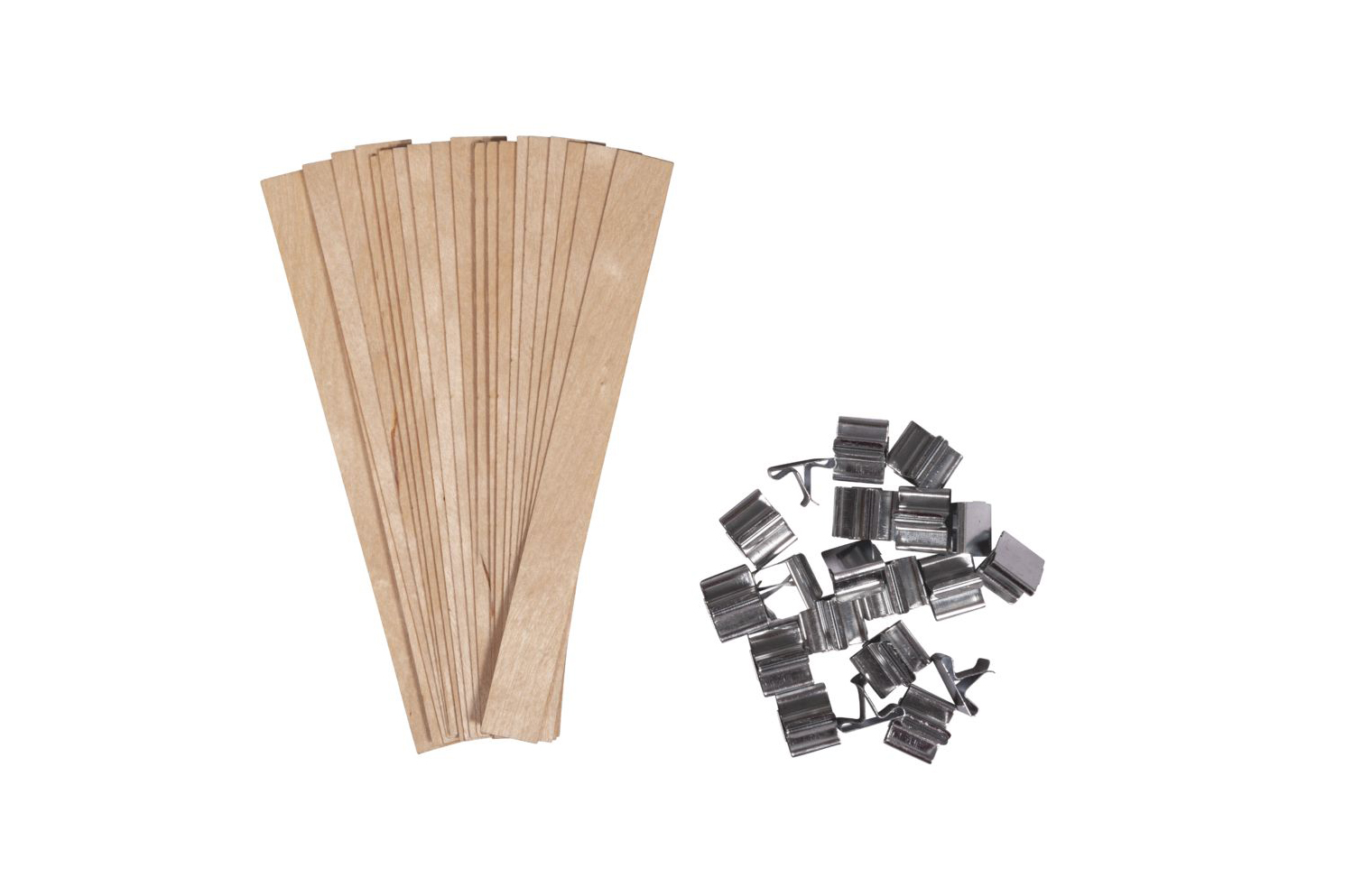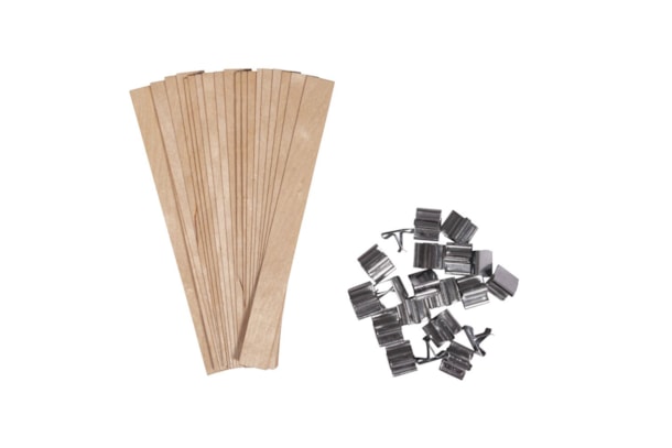 Wooden wick with metal wick holder, 1.5x15cm, tab-bag 1set