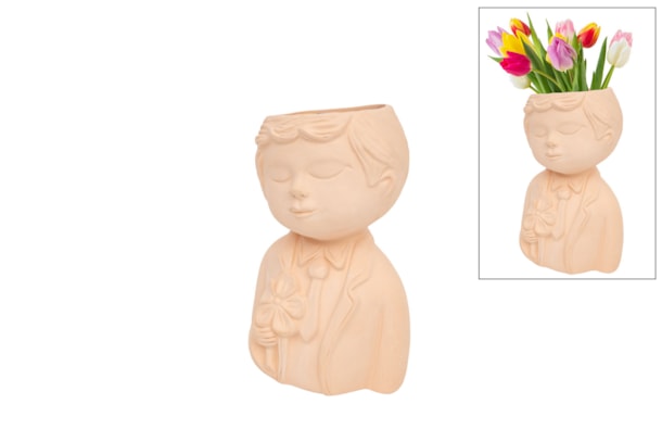 Vaso de chacota, original e cheio de carácter. Tem um design moderno, que ilustra o busto de um menino encantador. É a peça perfeita para as pequenas plantas. É um vaso exclusivo muito funcional e versátil, com o qual pode criar o seu próprio jardim e dar um toque natural às salas de estar, salas de jantar, corredores, quartos e até escritórios de qualquer estilo decorativo!
