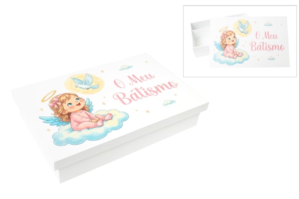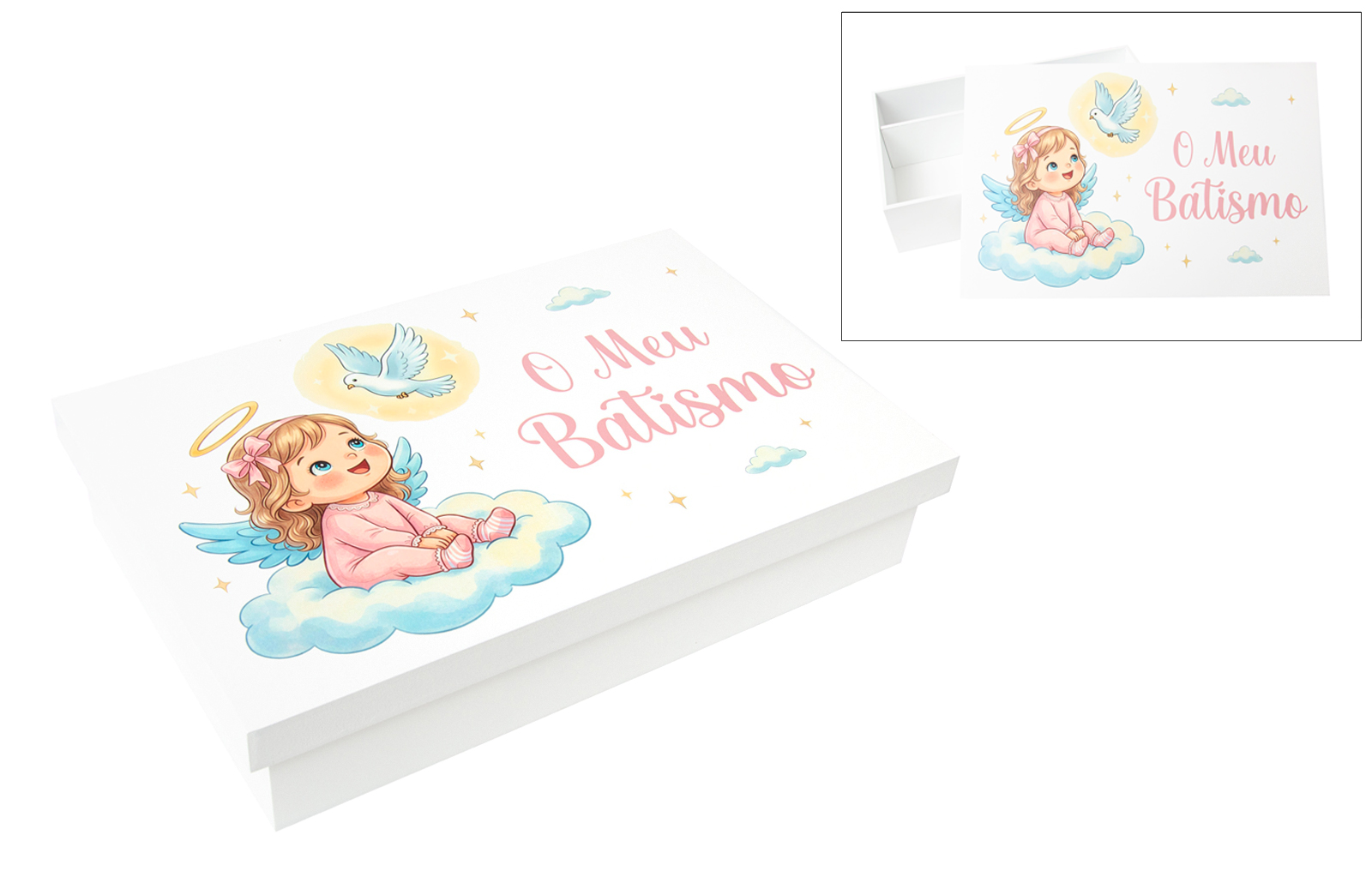 CAIXA P/ BATIZADO MENINA LACADA 38X25X7.5CM BRANCA