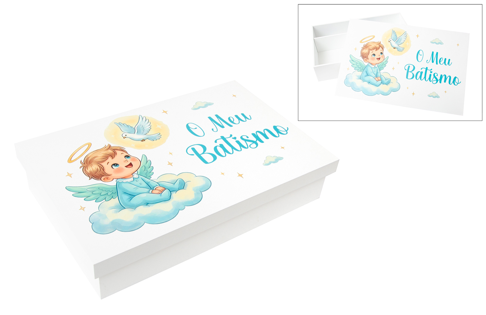 CAIXA P/ BATIZADO MENINO LACADA 38X25X7.5CM BRANCA