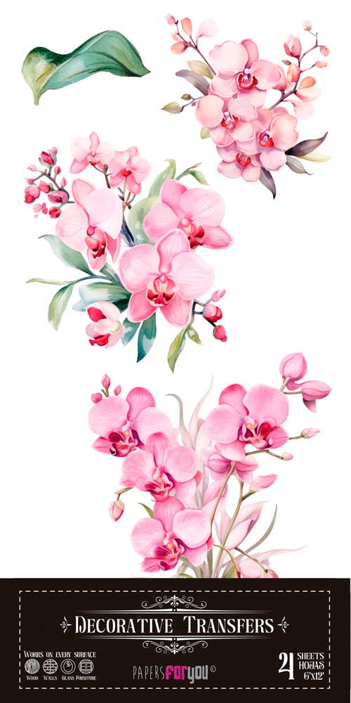 DECOR TRANSFERS 15X30CM FOLHAS (ORQUIDEA ROSA) PFY-14625