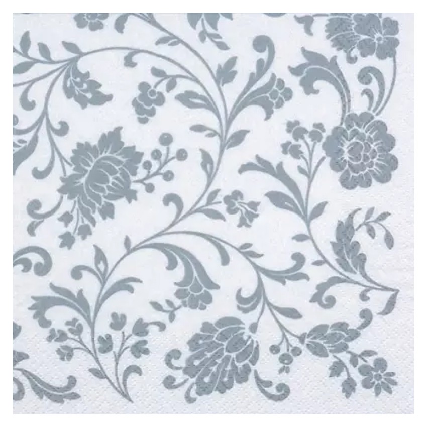 EMB. 20 GUARDANAPOS 33x33CM FLORES PRATEADAS 340724