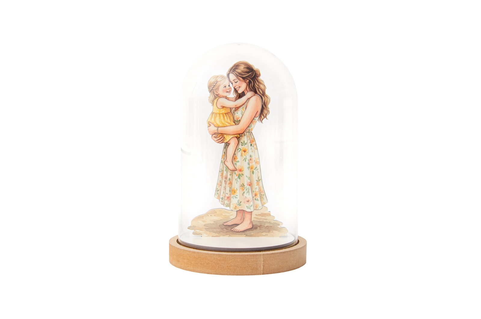 Eternize a ligação entre mãe e filha com esta campânula em MDF, que apresenta uma ilustração em impressão UV de alta definição. Com um design elegante e acabamento cuidado, é a escolha ideal para o Dia da Mãe: uma peça decorativa que celebra este vínculo especial com toda a emoção e delicadeza.