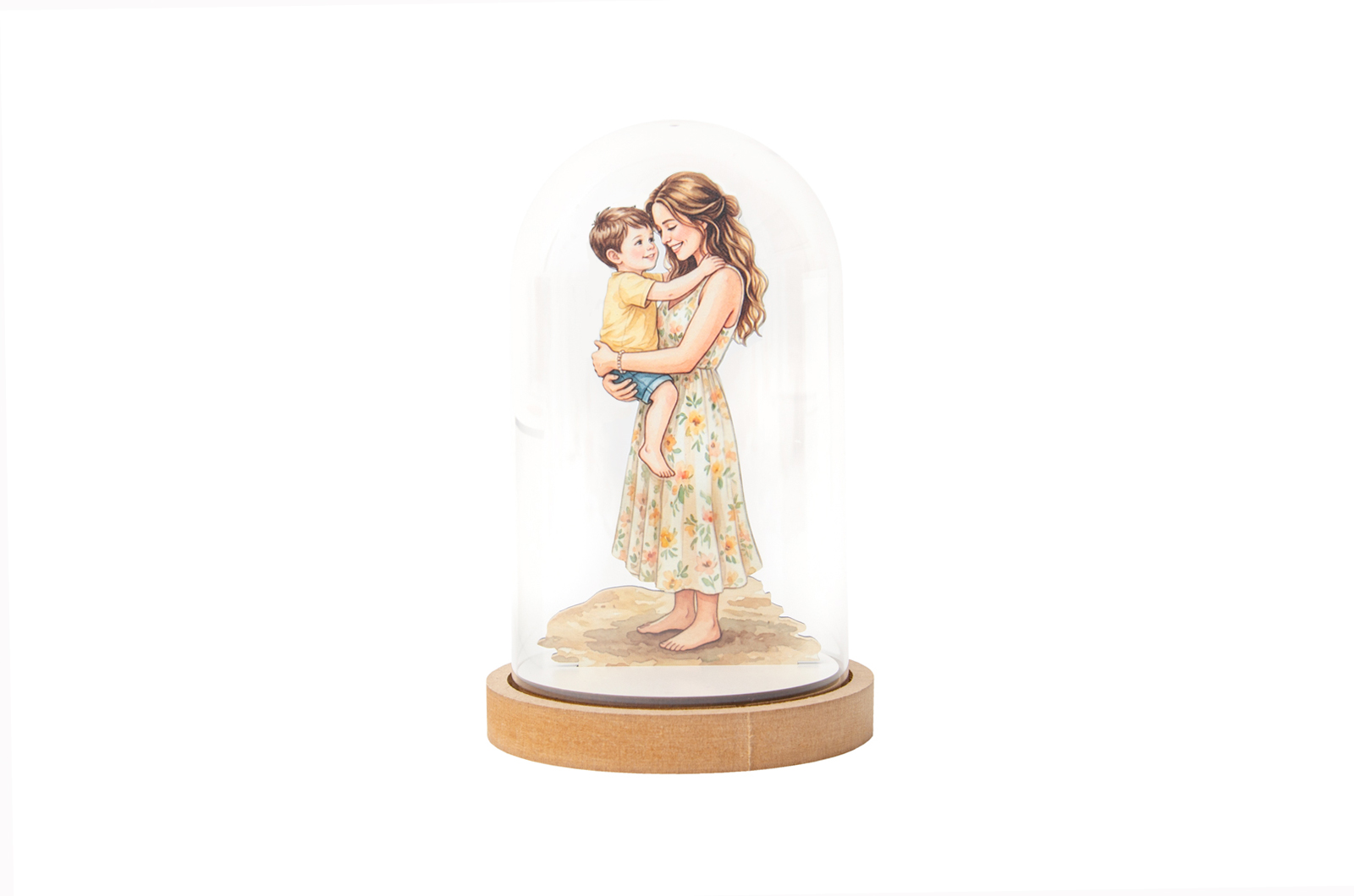 Eternize a ligação entre mãe e filho com esta campânula em MDF, que apresenta uma ilustração em impressão UV de alta definição. Com um design elegante e acabamento cuidado, é a escolha ideal para o Dia da Mãe: uma peça decorativa que celebra este vínculo especial com toda a emoção e delicadeza.