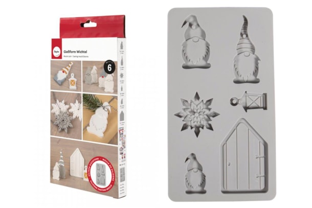 Molde silicone 26x14.5x1cm, 6 motivos diferentes. Medidas Gnomos 3.9x7.5cm- 3.7x9.5cm- 2.8x5.4cm - lanterna 2.9x5cm - floco neve 6.2x6.2cm - porta 6.4x10.1cm - altura 0.9cm