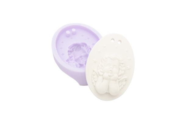 MOLDE SILICONE BASE OVAL COM ANJO 8.5X5.5X2.5CM MLD293