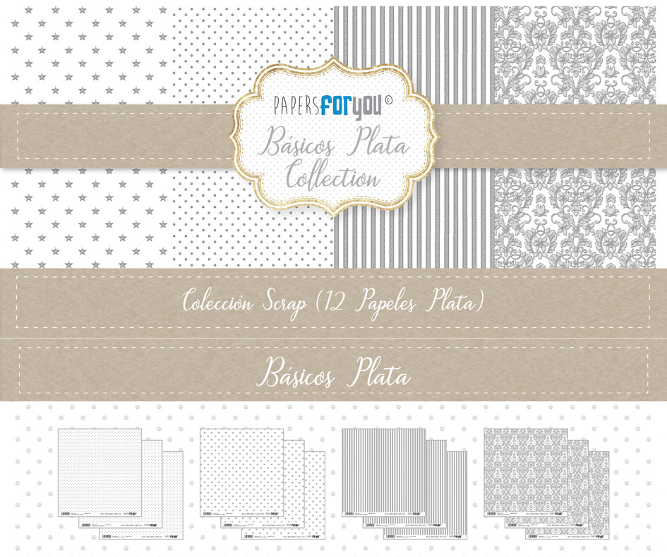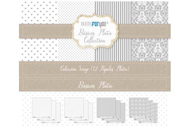BLOCO 12 PAPEIS SCRAP 180grs 30.5X30.5CM BASICS SILVER PFY-1383 PAPERS FOR YOU