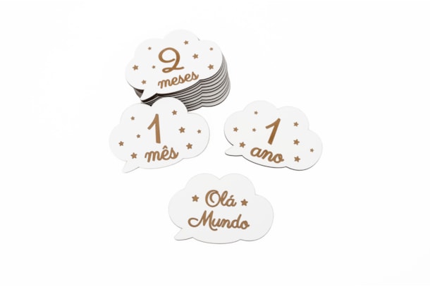 SET 13 PLACAS DE NASCIMENTO NUVEM 12X8.2X0.3CM MDF BRANCO