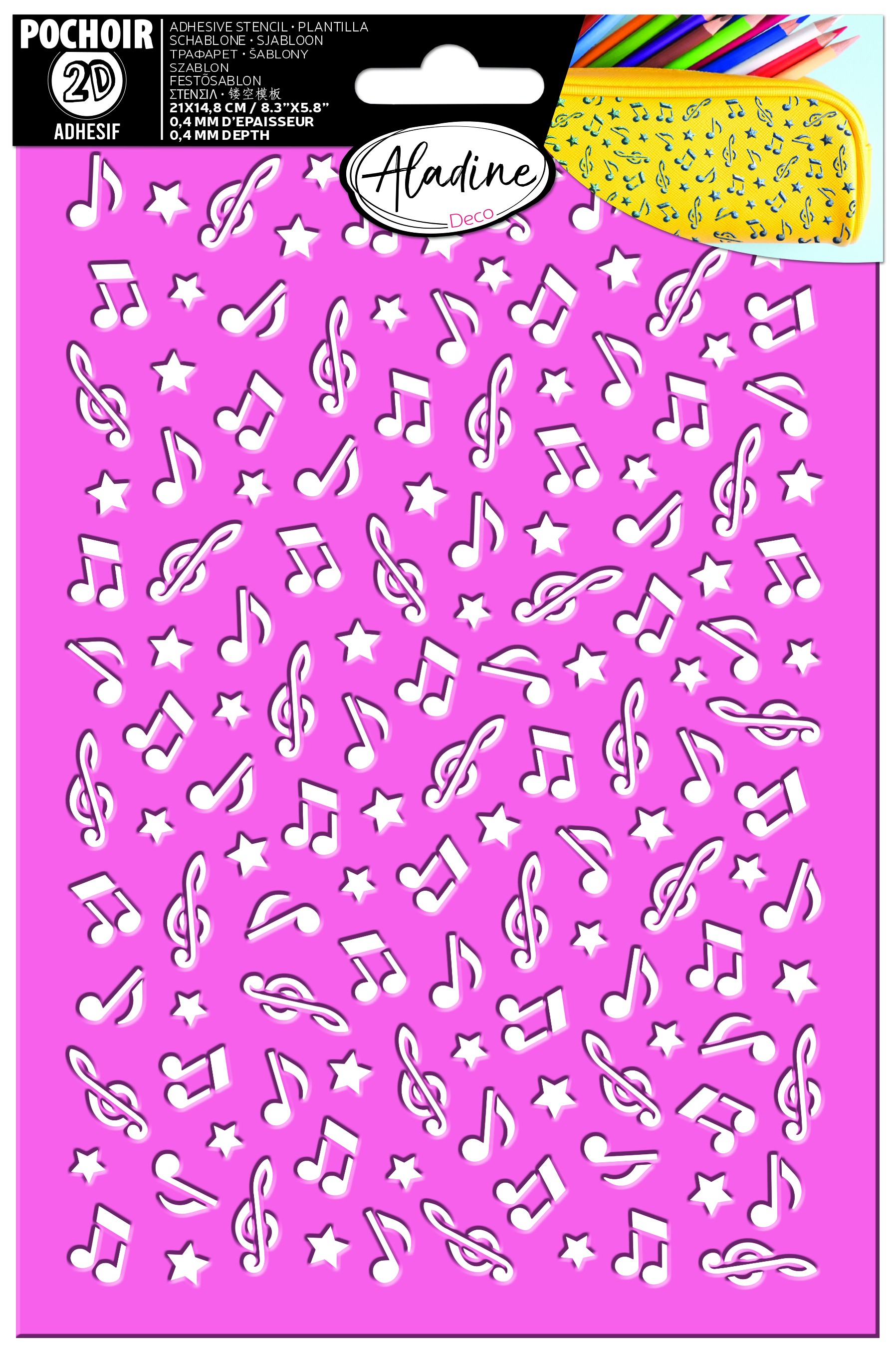 STENCIL ADESIVO 3D 21X14.8CM NOTAS MUSICA 81182