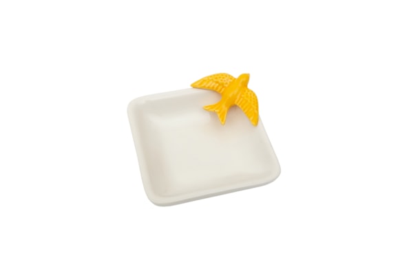 TAÇA BRANCA ANDORINHA AMARELA 13.5X13.5X3.5CM