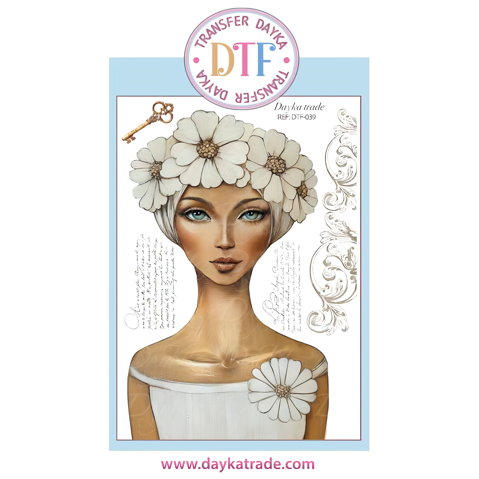 TRANSFER DTF-039P 14.28X19CM MENINA COM FLORES