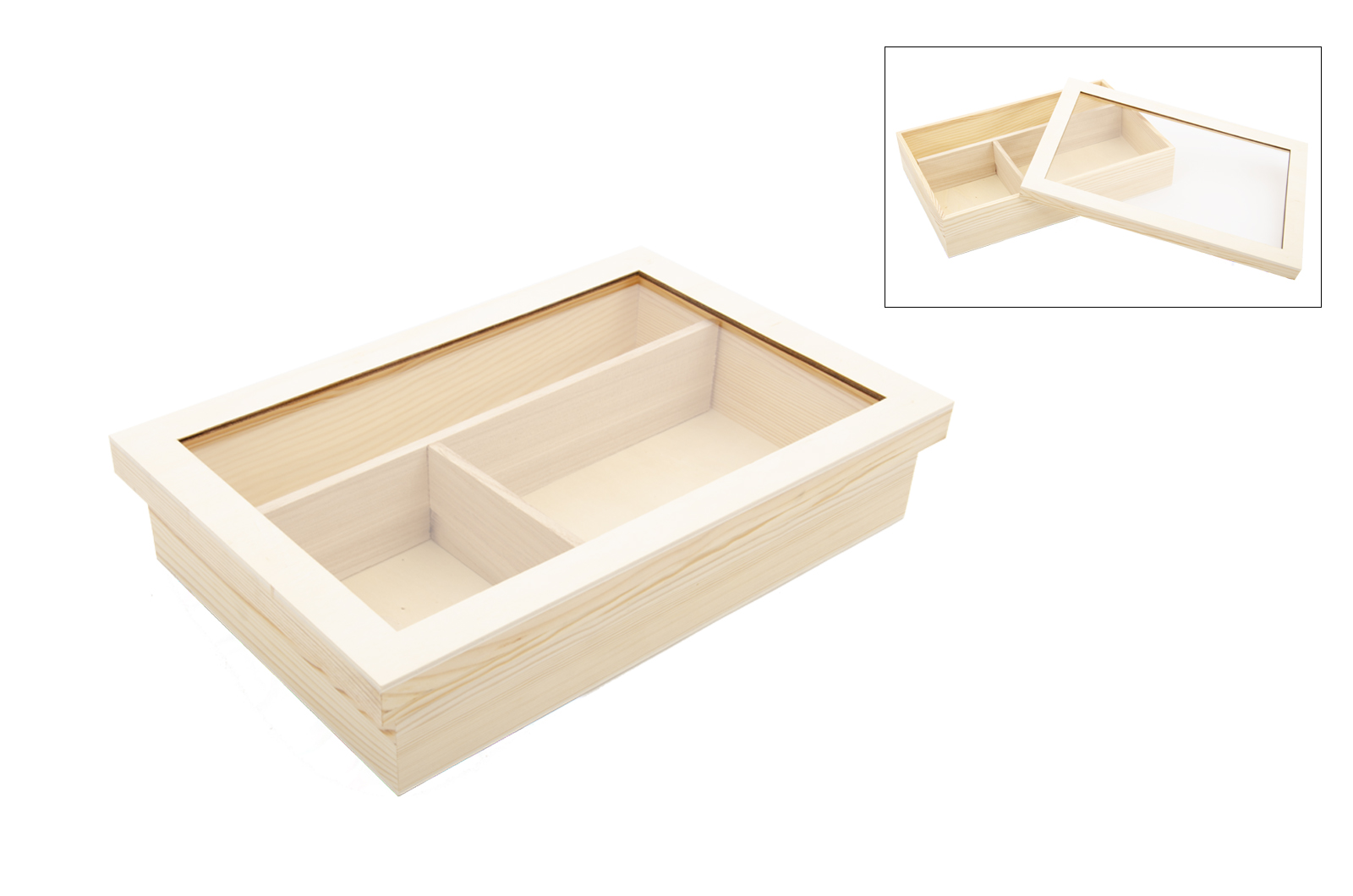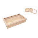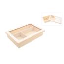 Wooden box with removable partitions. The cover is snap-fit. Can be used to store the souvenirs of the christening.