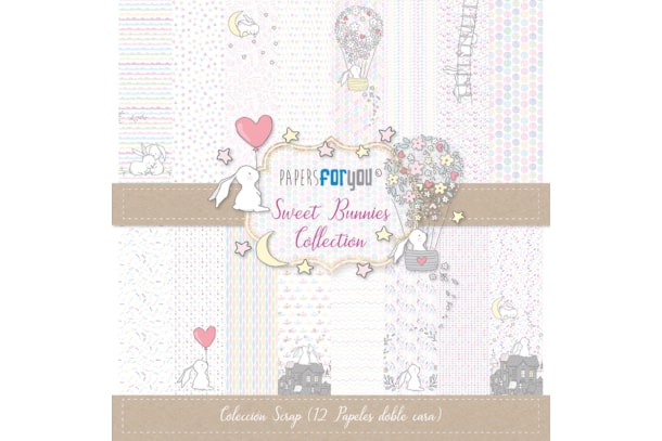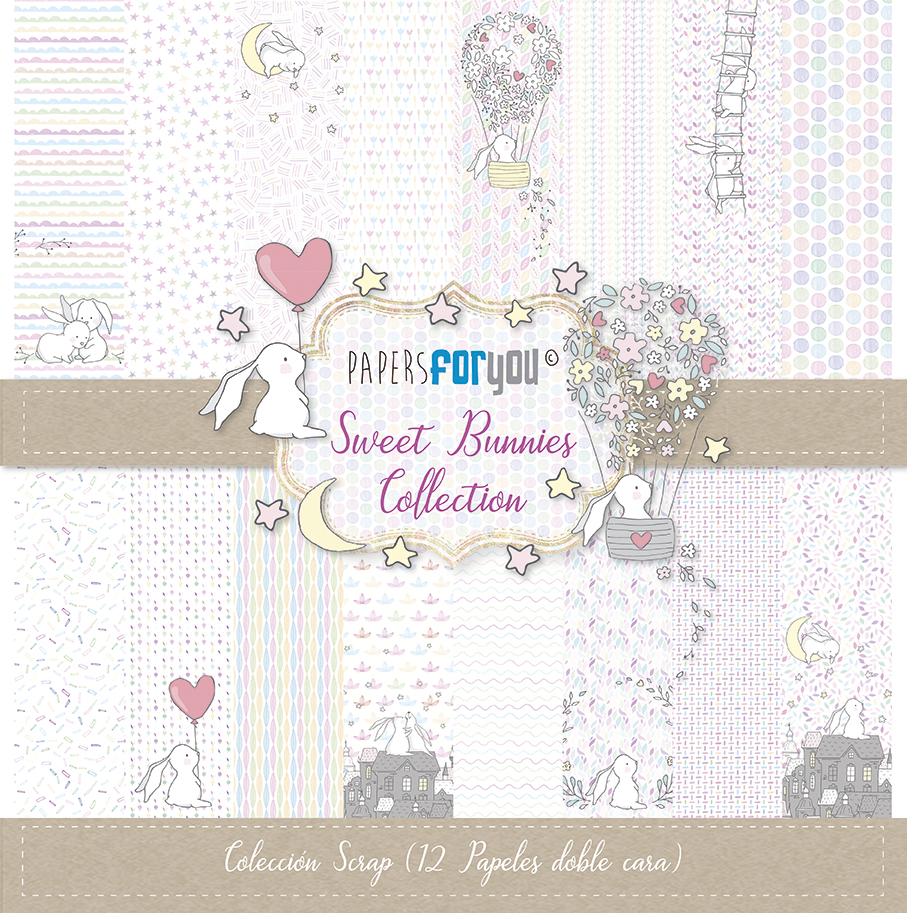 BLOC 12 PAPERS SCRAP 30.5X30.5CM SWEET BUNNIES PFY-1338 PAPERS FOR YOU