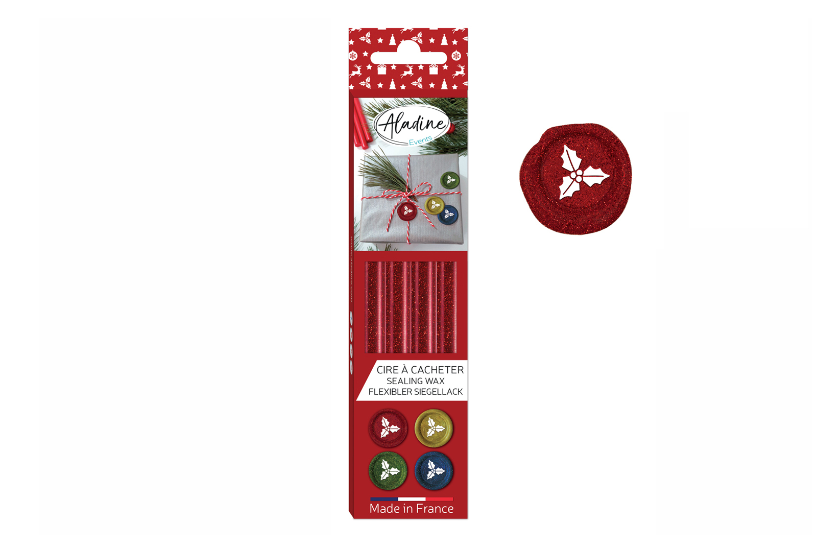PACK OF 4 ROUND FLEXIBLE WAX STICK RED W/GLTTER 72453