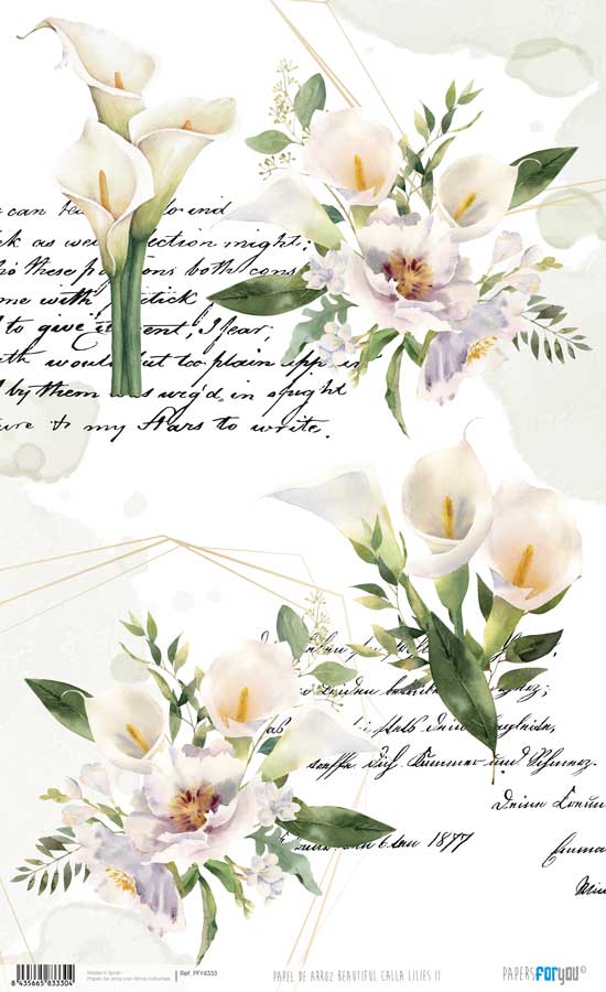 RICE PAPER 54X33CM BEAUTIFUL CALLA LILIES II PFY-4333