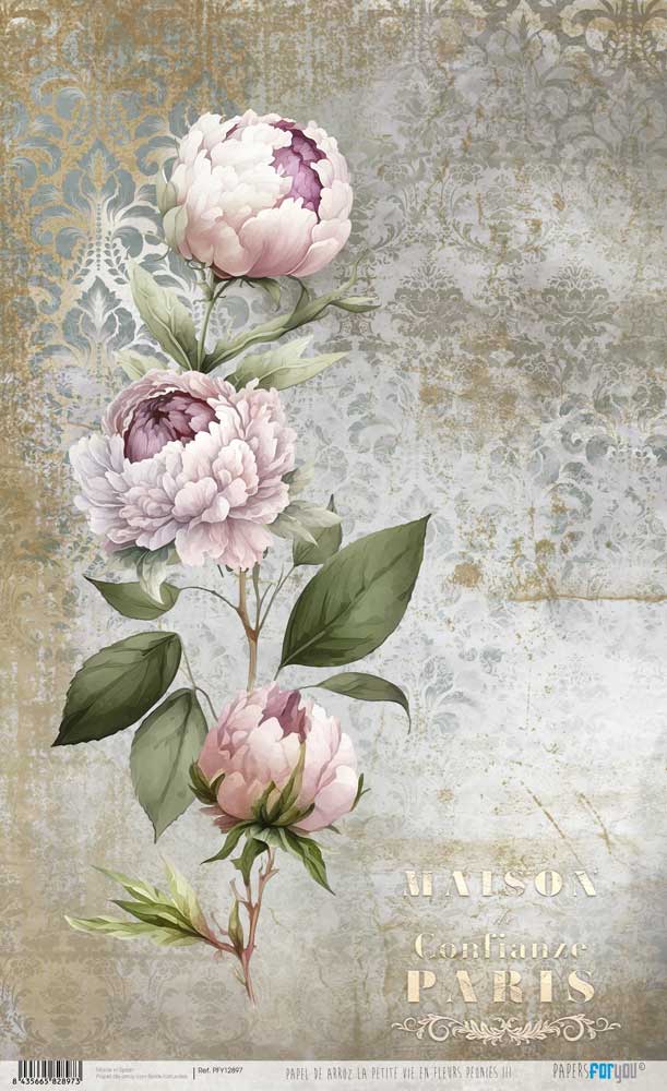 RICE PAPER 54X33CM PETITE VIE EN FLEURS PEONIES PFY-12897