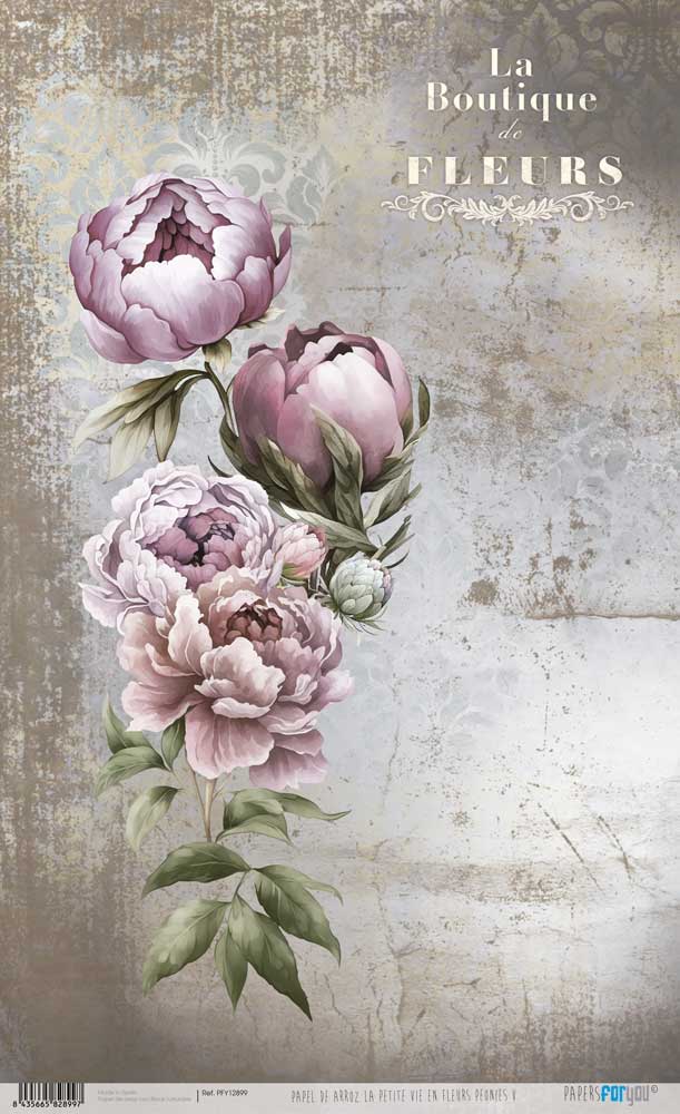 RICE PAPER 54X33CM PETITE VIE EN FLEURS PEONIES V PFY-12899