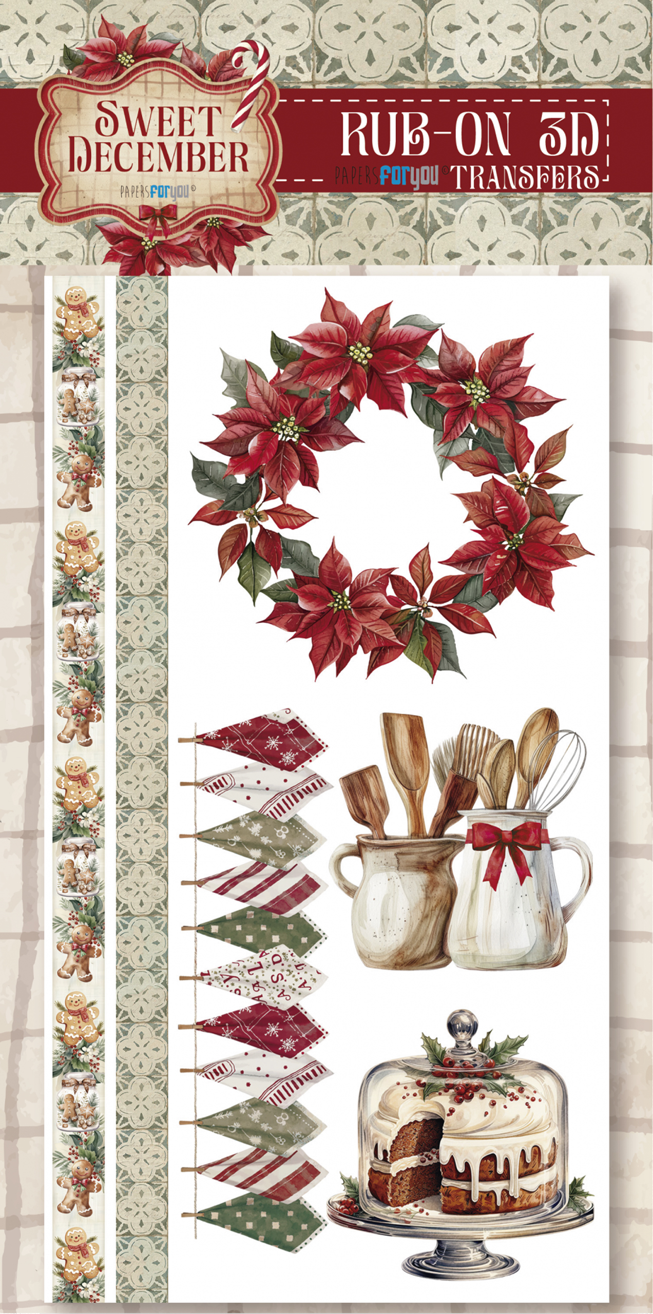 RUB ON 3D TRANSFERS 12X25CM SWEET DECEMBER PFY-15367 PAPERS FOR YOU