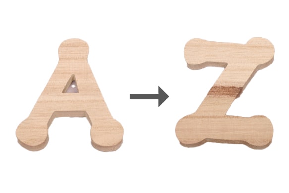 ALFABETO MADEIRA 7CM: 1 set de 10 de cada letra