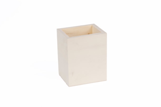 Caja de madera para lápiz y bolígrafos. Decora con pinturas acrilicas o papel y aplicaciones.