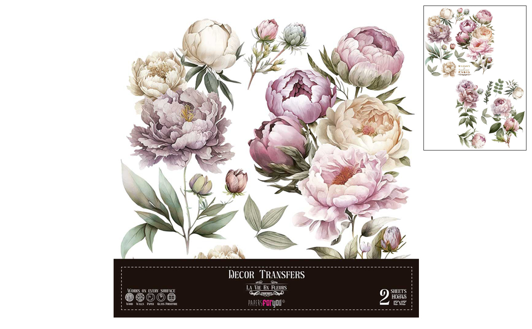 DECOR TRANSFERS 30X30CM PEONIES PFY-14785