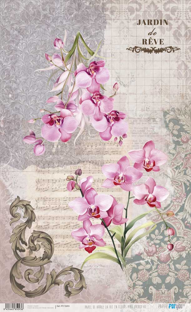 PAPEL ARROZ 54X33CM LA VIE EN FLEURS PINK ORCHID PFY-15093