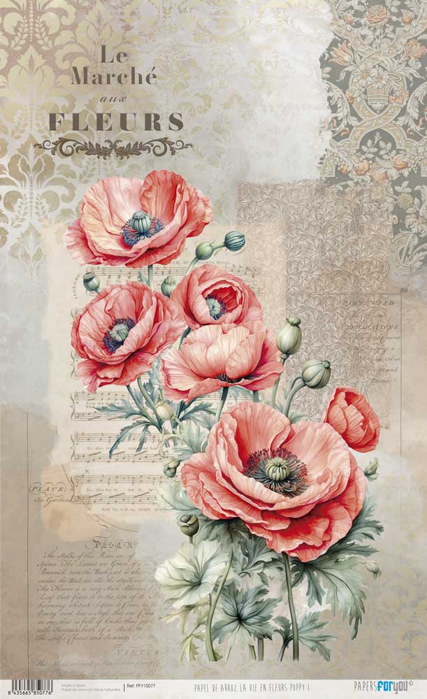 PAPEL ARROZ 54X33CM LA VIE EN FLEURS POPPY I PFY-15077