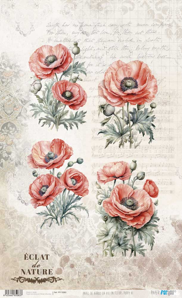 PAPEL ARROZ 54X33CM LA VIE EN FLEURS POPPY VI PFY-15083