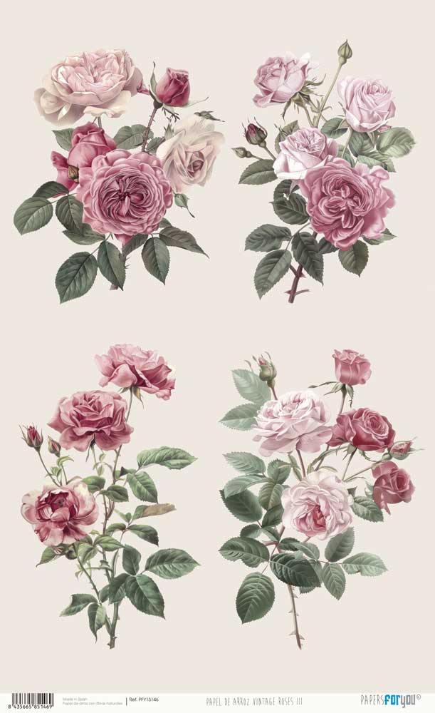 PAPEL ARROZ 54X33CM VINTAGE ROSES III PFY-15146