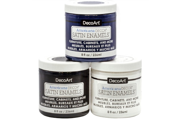 Las Pinturas Satin Enamels Americana son ideales para proyectos DIY y técnicas de pouring, ofreciendo una excelente cobertura y un acabado satinado duradero. Perfectas para muebles, cocinas y armarios, son fáciles de aplicar y no requieren imprimación ni sellador. Se adaptan a superficies como madera, vidrio, cerámica esmaltada y metal. El tiempo de secado entre capas es de 1-2 horas, con una curación completa en 21 días. Para mejores resultados en superficies lisas, use una esponja cosmética densa o aplique suavemente con un pincel.