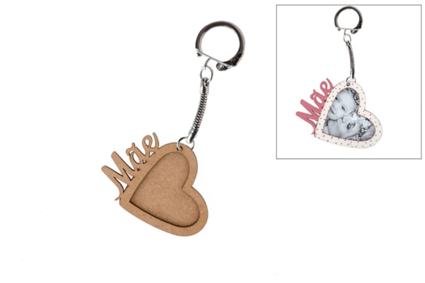 SET 12 LLAVERO "MAE" C/ CORAZÓN 6.8X5X0.3CM MDF