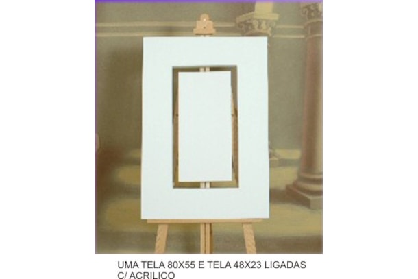 Tela louca, 100% algodão para pitura a óleo ou acrilico. A moldura é fabricada em madeira de 4,5cm. As ligações são com tubo de inox. É possivel o fabrico de outras dimensões mediante consulta.