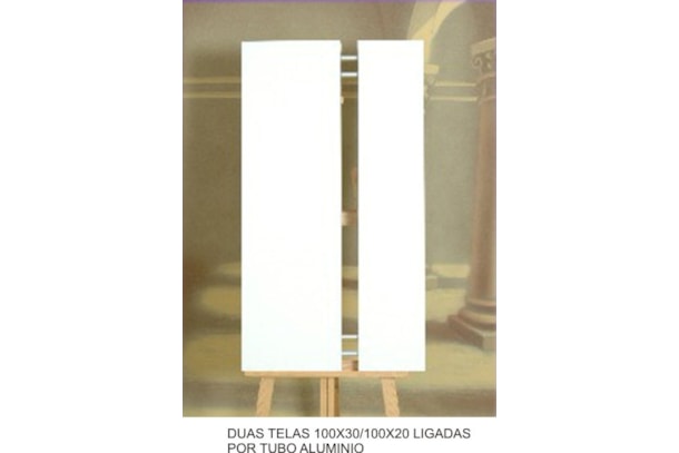 Tela louca, 100% algodão para pitura a óleo ou acrilico. A moldura é fabricada em madeira de 4,5cm. As ligações são com tubo de inox. É possivel o fabrico de outras dimensões mediante consulta.