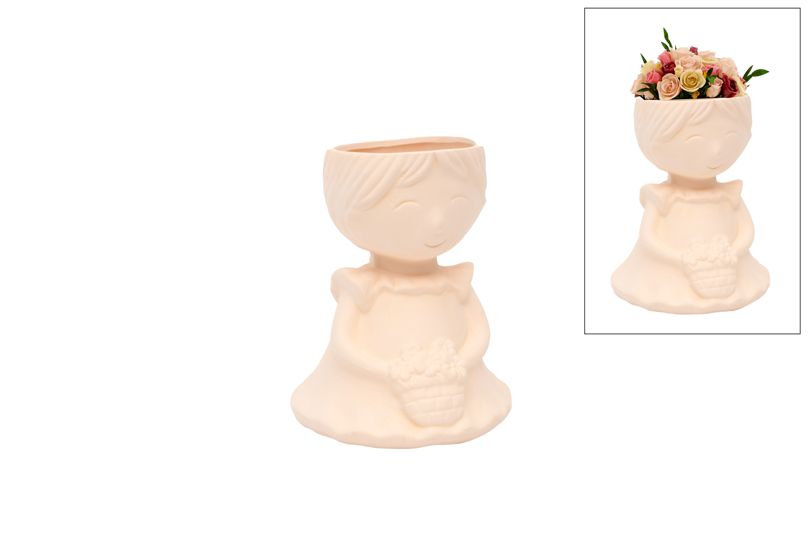 CACHE POT MENINA C/TRANÇA 11X19.5CM