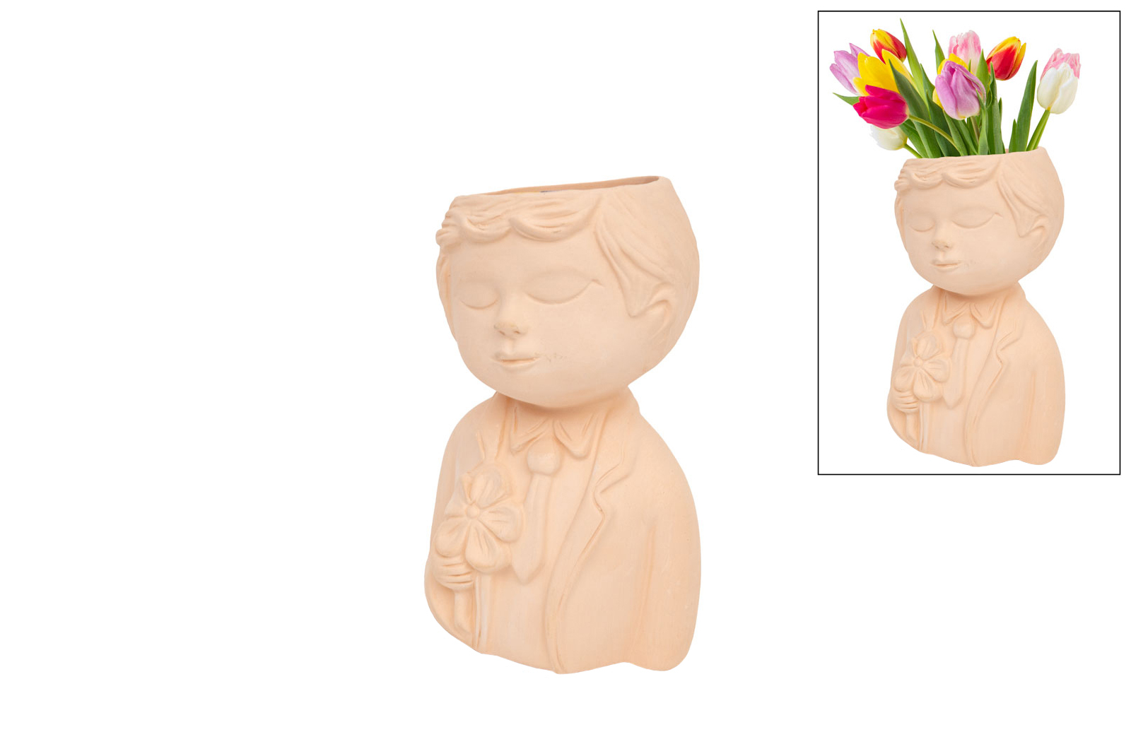 Vaso de chacota, original e cheio de carácter. Tem um design moderno, que ilustra o busto de um menino encantador. É a peça perfeita para as pequenas plantas. É um vaso exclusivo muito funcional e versátil, com o qual pode criar o seu próprio jardim e dar um toque natural às salas de estar, salas de jantar, corredores, quartos e até escritórios de qualquer estilo decorativo!