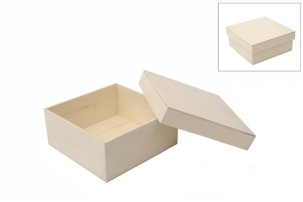Caixa quadrada com tampa. Medidas:19x19x8cm.
