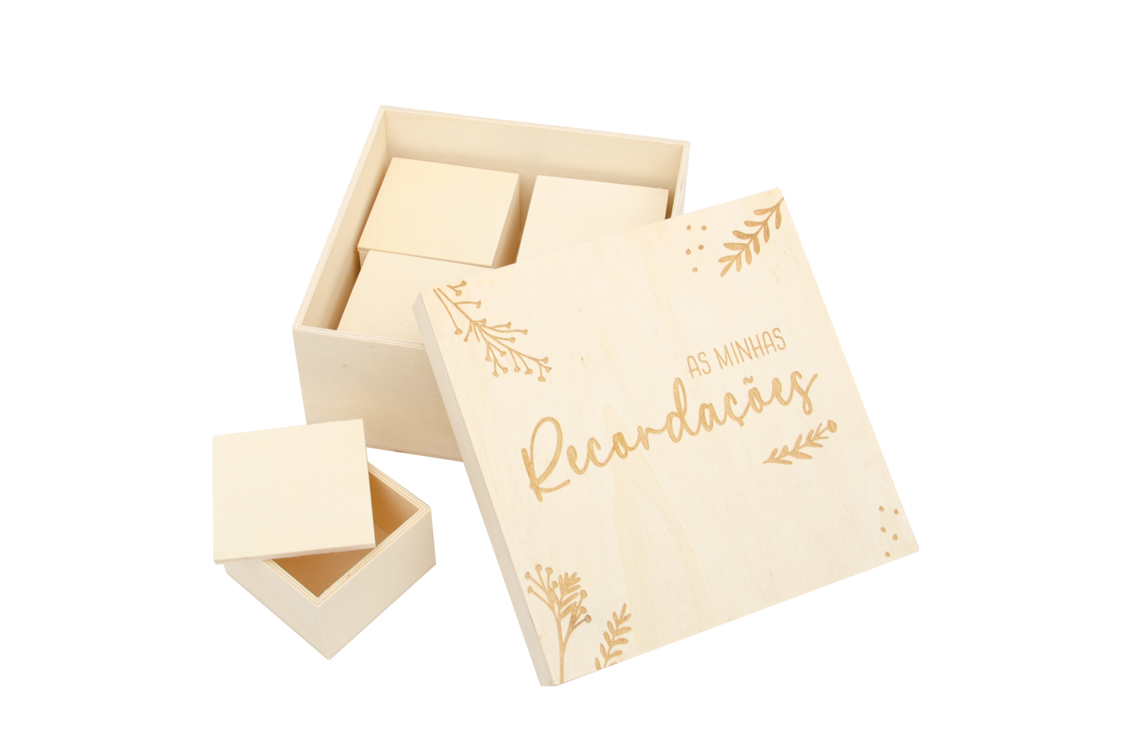 CAIXA AS MINHAS RECORDAÇÕES 18X18X8.5X0,8CM C/4 CX 7X7X4.5CM