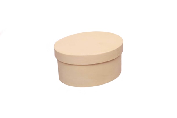 Caixa de balsa oval com tampa de encaixe para decorar. Tamanho: 8x6x4CM
