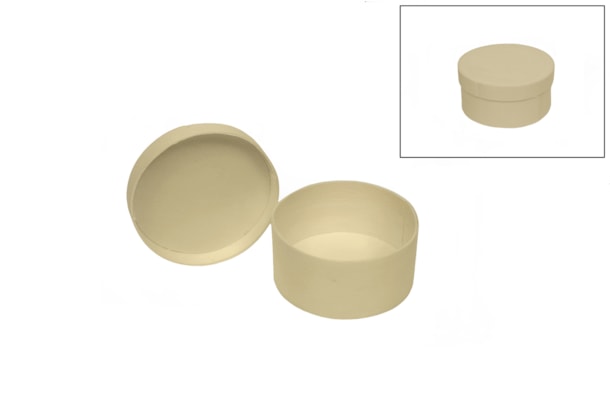 Caixa de balsa redonda com tampa de encaixe para decorar. Diâmetro: 7.8cm, Altura: 4cm