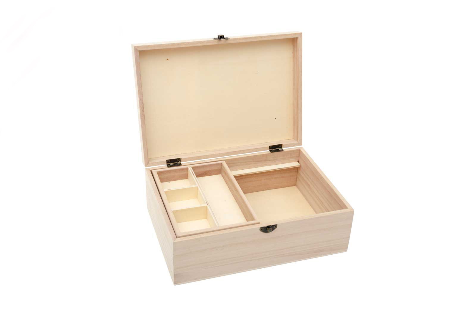 Caixa para arrumar os seus pertences de costura no seu atelier.Tem tabuleiro com divisórias no interior. Complemente a decoração da caixa com o corte laser máquina de costura, ref. 741301.