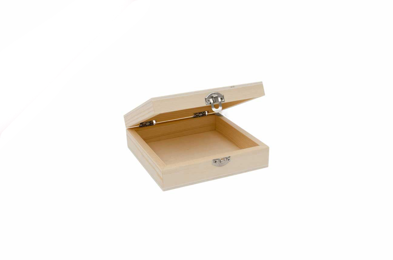 Caixa de madeira com tampa de fecho. Ideal para decorar com tintas acrilicas, papel, tecido, etc. Distribuido por LG Arts & Crafts