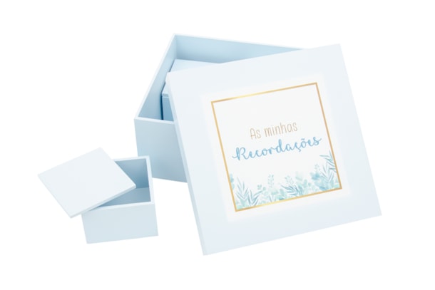 CAIXA RECORDAÇÕES LACADA AZUL 18X18X8.5CM C/4 CX 7X7X4.5CM