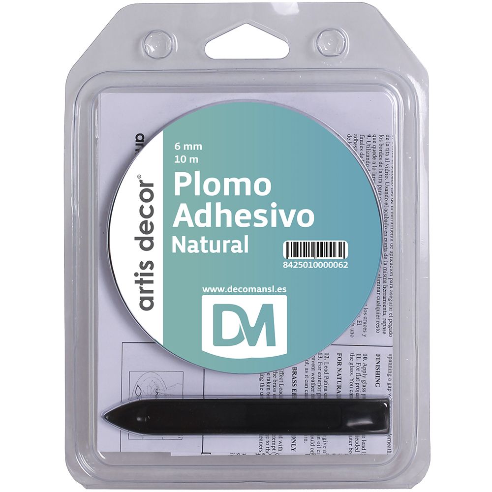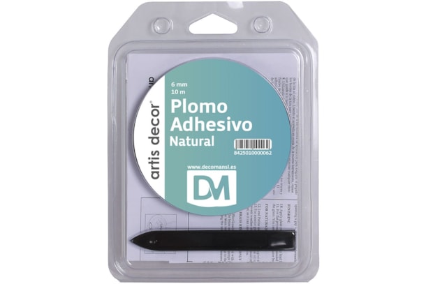 CHUMBO ADESIVO 6MM X 10 M ARTIS DECOR. Tira de chumbo adesivo para confecção falso vitral. Pode aplicar em lampadas imitação Tifani e outros trabalhos manuais. É um tira dupla de 3 mm cada uma. Leva um aplicador de plastico para facilitar sua aplicaçao.