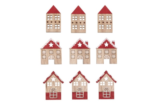 Madeira, corte a laser, designs diferenciados e um conjunto de cores tradicionais tornam essas delicadas casas de inverno especiais. Com ponto adesivo nas costas.
