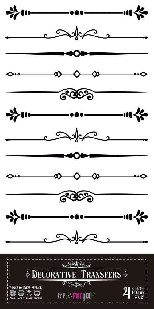 Folhas adesivas para móveis, paredes, vidro, papel, madeira... muito fáceis de aplicar e com resultado de alta qualidade. Todos os kits incluem uma pauzinho de madeira para facilitar o seu trabalho. Colocar o transfer no seu projeto, raspar / friccionar com o pauzinho e retirar a pelicula . Embalagem de 3 folhas. Desenhado e fabricado em Espanha.