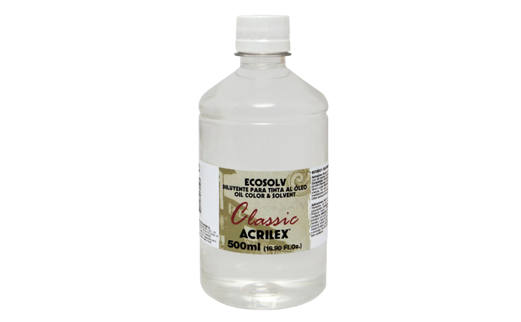 DILUENTE ECOSOLV 500ML ACRILEX 17050. Para dissolver a tinta a oleo em geral, substituir a terebentina com as mesmas propriedades sem o seu caracteristico cheiro forte.