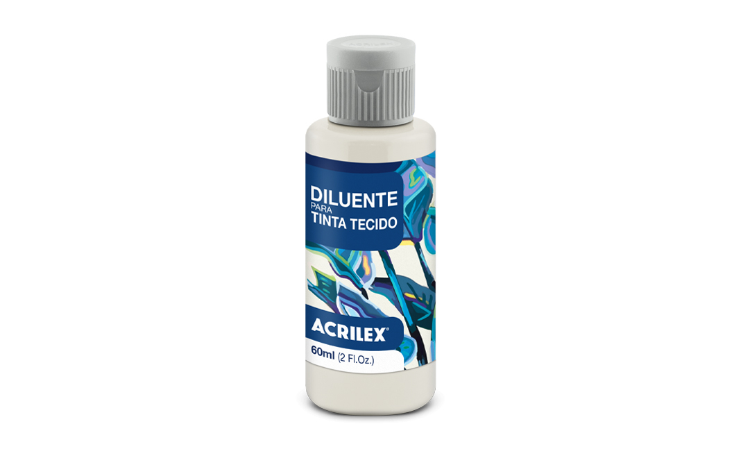 Diluente para tecido Acrilex indicado para diluir a Tinta para Tecido fosca, retardando a secagem. Pronta para uso. Pode ser aplicado com pincel ou separando uma parte e misturando-a com a Tinta para Tecido. Lavar o tecido antes da pintura, para retirar os resíduos de goma. Esperar 72 horas para fixação da pintura.